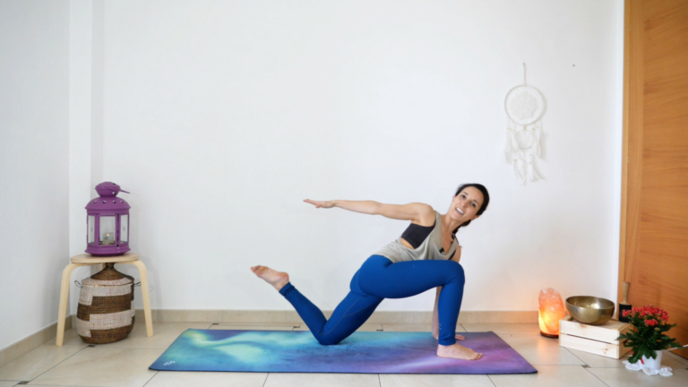32 min.Una lezione dedicata a tutto il corpo sfruttando le transizioni più dinamiche delle posizioni in piedi.