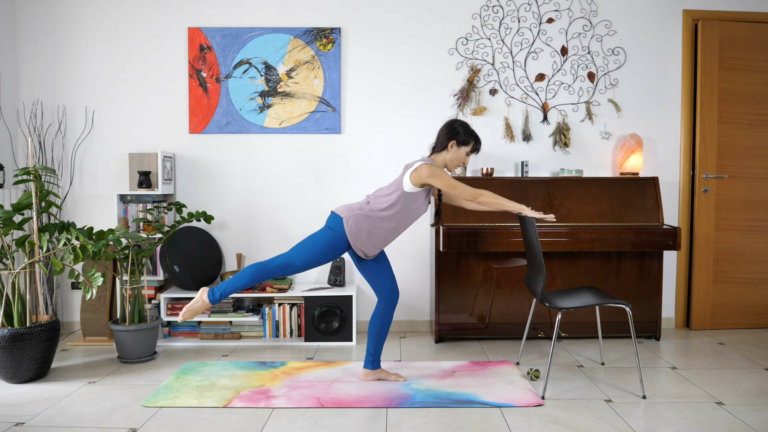 32 min.Migliora l'equilibrio, la forza della parte inferiore del corpo e il radicamento con l'aiuto della sedia. Alla fine della lezione, una postura piacevole ti aiuterà a ridurre la tensione alla schiena e a rilassarti con gentilezza.