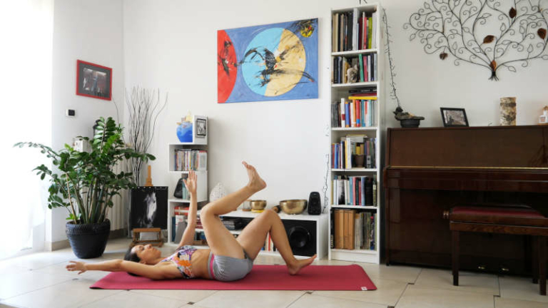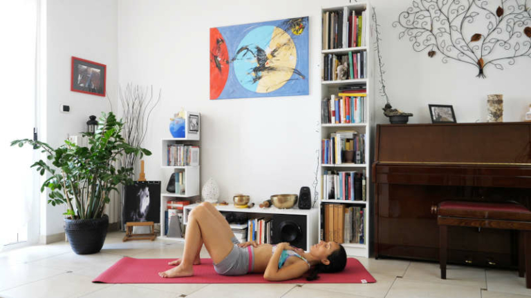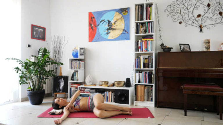 12 min.Riequilibra il tono muscolare grazie a torsioni gentili della colonna e movimenti consapevoli.