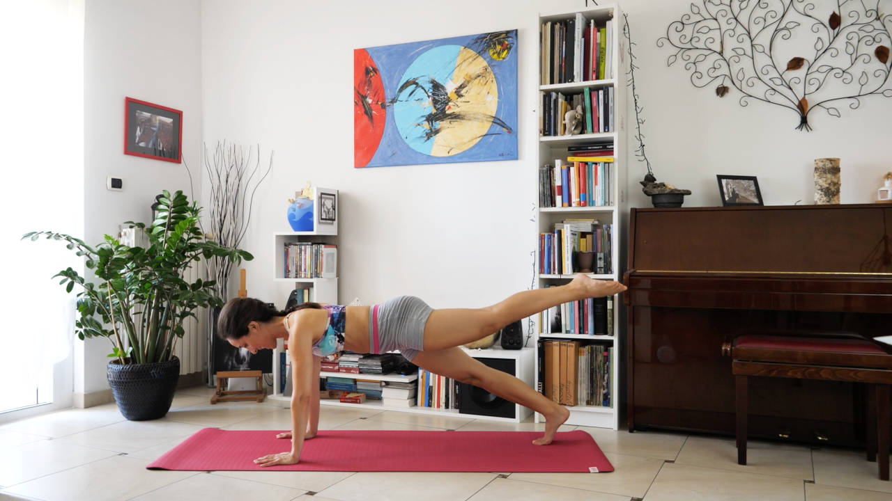 10 min.Riscalda il corpo in quadrupedia e prepara al meglio il tuo core (centro) a lezioni dinamiche che richiedono forza e controllo.