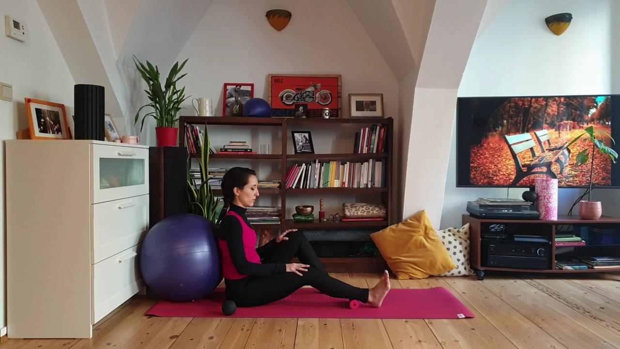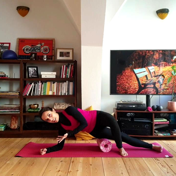 18 min.In questa pratica, imparerai qualcosa in più riguardo al muscolo piriforme e a come rilasciarne la tensione con l'aiuto del roller e della pallina.