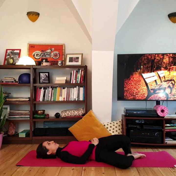 7 min.Durante questa pratica imparerai a massaggiare la tua schiena con grande sollievo per le tensioni tra le scapole e in generale per tutta la parte posteriore di te (gli input dati al sistema miofasciale si trasmettono alle aree connesse).
