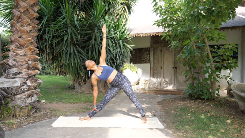 In questo video praticherai una sequenza incentrata su Utthita Trikonasana, la Posizione del Triangolo in estensione, che rinforza gli addominali e ti aiuta a sentire e ad aumentare gradualmente la tua capacità respiratoria.